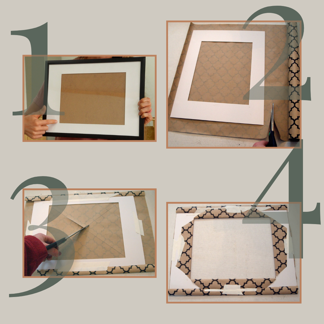 The process is super simple: Just cut your scrap material to fit the frame, tape your photo right in the center, and pop it back in.